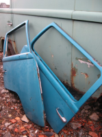 Døra er uten trekk og vindu. Har det små luftevinduet demontert.