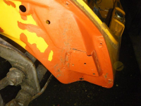 Her ser me der stålet har bølga seg ved kollisjon. lakken har sprekt vekk og so har dei tectylert direkte oppå. kun overflaterust. Skal rettast opp litt i dog