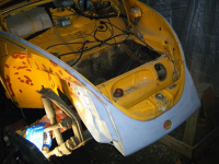 Innpå forumet til VWACB i bergen dukka da opp ei flott gul sparebobla til ein rimleg pris. Sikla ei stund på den men fant ut att eg hadde vel bila so eg klarde meg... so for ein kompis ned å skådde på den, og påpeika att da relativt lite rust.. då vart eg jo plutsleg sugen igjen, og ettersom ingen andre hadde meldt si interessa i salgstråden endå so fant eg ut att eg måtte slå på tråen. Fekk den rimligare enn prisantydinga, noko som gjor da til eit kupp. so då vart henting planlagt, prøveskilt vart kjøpt og eg begynte å leita framm verktøy og deler i garasjen.