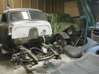 restaurerte bakplater montert. etter sandblåsing vart dei heilsveiste i skjøyten innvendig. dei orginale til bilen var smuldra opp..