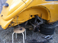 Bilen heist opp bak og klar fø å plokka av bak.