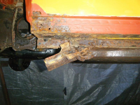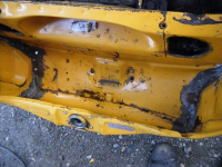 Her ser me der stålet har bølga seg ved kollisjon. lakken har sprekt vekk og so har dei tectylert direkte oppå. kun overflaterust. Skal rettast opp litt i dog