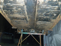 restaurerte bakplater montert. etter sandblåsing vart dei heilsveiste i skjøyten innvendig. dei orginale til bilen var smuldra opp..