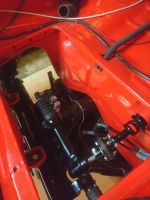 I dag kom motor, girkasse og bakstilling ut. I morgen blir det lakking av ymse deler så montering torsdag/fredag. Øyerulling