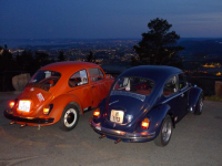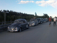Bilder fra igår. 11 VW`r og en Porsche møtte opp.  Nesodden rundt i knallvær. Aldri sett så mange folk smile og vinke til oss fra hager, vinduer, verandaer, i biler, i gatene, på bryggene, egentlig over alt, noen gang på Cruisingene tidligere. Helt konge.... Men hvor var han med nye røde Koni dempere blitt av  Hæ  Blunker..   Kult