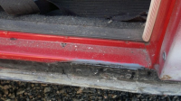 Skjært ut rusthull! Gjorde hullene noen cm for store da jeg skimtet brunfarge bak! (heldigvis ikke alvorlig!) Fjernet jekkfester samtidig...