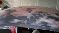 hele karosseriet er slipt ned i flekker slik som taket på bildene! også tenkte jeg å strippe og male bunnplaten helt! Blunker