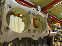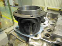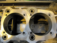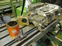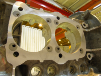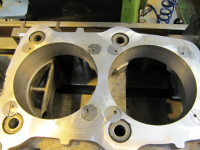 Mr. Bone-dry-Bryhn er tilbake med mer seriøse og mer fagrelaterte oppdateringer enn noen sinne, selv på 1. april... Hvem her mener at en definert motorbyggetråd skal være full av alt mulig annet piss?  Neste naturlige steg i prosessen har vært å sette vendehøyde og dreie sylinderforingene til en større ytre diameter i bunnen for å passe hullet i WBX-blokka. WBX-en har et sylinderhull som klokker inn til nøyaktig 100,00mm, kontra noe i nærheten av 97mm som er vanlig å maskinere til når en tar Type 1-blokka opp til 94mm-borring. Etter et grovkutt av begge blokkhalvdelene til lik høyde, et grovkutt av testforingen der jeg gikk ned ca.10mm og satte den nye diameteren til 99,95mm, fant jeg ut følgende etter rmåling av vendehøyden: Fra mitt nye gitte utgangspunkt måtte jeg ned hele 19,4mm for å få de nye foringene til 0,0mm i vendehøyde. Dette skyldes bla. at jeg har gått for B-stempler hvor krysspinnen har blitt flytet nærmere ringlandet. Jeg besluttet å kjøre blokkhalvdelene ned 4,4mm og ta de resterede 15,0mm ned på foringene. Ferdig plana til spec. Nå fikk jeg også alle setene for boltene på jevn høyde.