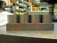 Holderen er av stål gitt. Fri tilgang på begge deler  Har ikke målt andre enn dummyen, og med 3-punkts innvendig micrometer klokket den inn på ca. 94,03mm. Denne var dog noe brukt. Det er ikke værre enn å ev. ta av en hundredeler eller to når foringene som er ment for prosjektet skal tas opp til WBX-spec. hvis det skulle "knipe" litt.