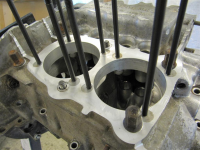 Har fått ordnet ferdig headstuds også. Før jeg begynte å kappe hemningsløst var jeg nøye med oppmåling for å få alle til riktig lengde. Jeg tok også høyde for at jeg kunne sette på topper som bygger både mer eller mindre fra utgangspunktet. Til mock-up brukte jeg bare noen gamle topper fra 1915-motoren min.