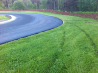 Mye gress rundt banen, men ikke på campingen. Vi ønsket ikke camping på baneområdet, fordi vi ikke ville bruke halve søndagen på å rydde unna folk. Nå viste det seg at det ikke ble noe problem.