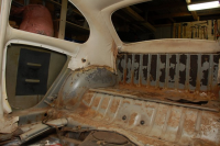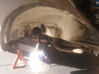 golv inni bilen: dersom du ikkje skal dela bilen, so er det ikkje noko serlig å sandblåsa(som er da besta) då bør du heller basera deg på å pussa reint med vinkelslipar og roterande stålbørste. so går du over med flappdisk veldig lett, tilslutt. so sveiser du det som må sveisa og deretter malar du som nevnt med arcanol