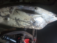 Noen som hadde lyst å hjelpe meg med tips? Brukte hammerlakk og malte frenre kant av gulv der hovedsylinder er, fynka bra!
