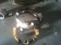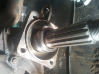 og for meg so ser da ut som du har fått ut lageret, er ikkje noko meir enn da du har tatt bilde av. ellers har du ei hylsa på akslingen. bak der finn du eine o-ringen. den store o-ringen skal vera rundt mot simringshuset. og simringen er den som held oljo vekke frå bremsane. so den må du byta. bank ut dan gamle og bruk den til å pressa inn den nye i ei skrustikka. du må finna ei fjøl eller noko til  å begynna med, og so treng du noko anna so du får simringen heilt på plass. hugs skjevo før simringen.