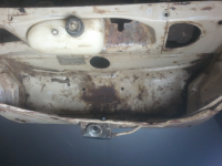 til under baksetet: fjern alt av hår og drit, rust pusser du reint og evt sveiser om da er hol, og so kan du jo mala heile greia med arcanol frå jotun. dette er bedre enn hammarlakk pga att hammarlakk vert steinhardt, og på ein bil av tynnplate vil da vera ein viss fleksing  i platene og du vil på sikt oppleva att hammarlakken sprekker og rust utviklar seg bak.. arcanol er mykje seigare og fleksibel