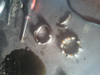 jeg åpnet opp for å se nærmere, men da jeg tok av trommelfeste(4bolter) rant det mye olje ut, pakningen bak trommelfeste var morken og ødelagt.