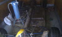 her er bobla ned plukket og klar for fjerne møkk og lort til sveising. tok bare sandblåsing siden jeg skal bruke det når jeg er ferdig med sveisinga for å nå ned til metallet før lakk.