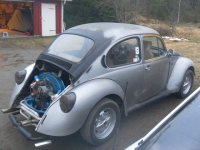 Siste to månedene har jeg intensivert arbeidet, mye ettersom jeg i høst fikk meg eget verksted og gode arbeidsforhold der. Alt av det elektrisk er lagt opp så og si på nytt. HAr lagt opp varmeslanger nytt, nye tepper. Alt innvendig er pr idag ferdig. Utvendig er bilen som skrevet tidligere flekkete og stygg, på grunn av at den egentlig skulle lakkeres av forigeeier for ti år siden. Har fått tatt alt som var av farlig rust, samt fått stoppet evt lakkrust o.l. I dag hadde jeg første prøve tur med den, og eneste jeg fat ut må gjøres er et bytte av clutch. Når dette er gjortdt skal jeg sende den til eu kontroll. Vi kontrollere den før lakkering ettersom jeg ikke vil herje med nylakkert bil Glad