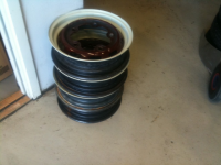 Har disse til overs.  selges til høystbydene eller byttes i 5 bolts "tette" org felger til min 65, som de nederst på bilde.