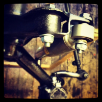 Original VW T2 55' forstilling som er kortet inn 2", flippa original spindler, flippa styrestag, nydreide original trommler, KYB GR2 dempere, Wagenswest grovtanna senkere, nye hjullager, bremsersko, fjærpakke, pumper, bremseslanger etc...(alt nytt til bremser)