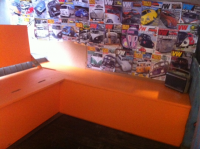 Gjort om litt inni bussen, fått bedre sittegruppe, fant ut at skap og hylleløsningen jeg begynte på ikke var så praktisk. Den ble orange, mye fordi det blir litt orange detaljer utenpå også, som fangere og litt striper...