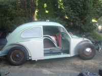 Skal montere inn en nyoverhalt 1300 40hk motor imorgen samt sette karossen på plata.Eksosen lager jeg selv.Senka bilen et hakk til bak igår så nå er det to hakk bak og muligens litt for mye foran Blunker vi får se når karossen er montert.