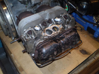 Begynte også å pusse ned noe kjøledeksler. Viftehuset tror jeg forblir som det er, kun litt polering. Resten av dekslene er smårustete, så dette blir pusset ned og lakkert med svart varmelakk.