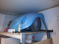BIG BREAKTROUGH  Den har vært uten helt siden høsten 2001, i dag har denne bilen endelig fått på HJUL!  Er nok bare to, og den står fortsatt på arbeidsrigger, men jeg synes no det er fremskritt.