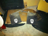 Brukte skvettlapper som har stått på 03, med Wolfsburg logo HBO 100,- solgtStoler fra Golf1(?) HBO 700,- for begge