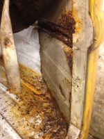 Første som skjer nå er sandblåsing og rustsveising. Her er ett prakteksemplar på hvor du skal se etter rust på bay  Gliser ALLE stedene er vel representert!!!
