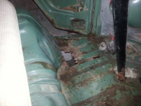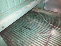 Her så det jo veldig fint ut, forrige eier fortalte at bilen var brukt til å kjøre ut olje en gang i tiden, og det vises baki under setene: