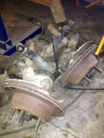 Fått sandblåst spindler og de nye bremsene og grunna de