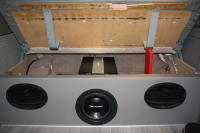 Kassen er laget i mdf, og laget smalest mulig for å få mest mulig ut av lagringsplassen under sofa. Kassen er på ca 22 liter, det som suben skal ha i lukket kasse.