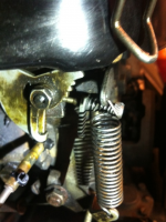men ang forgassaren, du må justera choken rett til utetemperaturen, dette har mykje å sei, og spesielt fordi da flytter armen som held den plata med hakk i, og derfor hindrer at den spinner rundt etc.