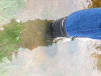 Det har regnet mye i mange dager nå, i tillegg til at det er noe høyt gress på plassen... så GUMMISTØVLER er et møst!!!!