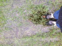 Det har regnet mye i mange dager nå, i tillegg til at det er noe høyt gress på plassen... så GUMMISTØVLER er et møst!!!!