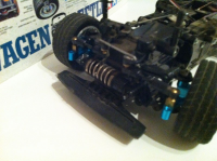 Denne er brukt, litt slitt i karosseriet. Har fått alu spindler foran (de i plast går i stykker ved første fortauskant) og nye felger nå. Nye dekk bak også. Standard felger følger med. Bilen har kulelager rund baut og RX-540 motor med høyere utveksling. Meget rask bil! Mekanisk fartsregulator. Følger ikke med radio/servoer eller batteri.