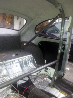 Har begynt å lage et halvbur, ikke helt ferdig, mangler skråstiver bak og 2 skråstivere fremover mot A-stolpen.