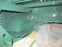 Rust på flensen? Ikkje braaaa...   Er usikker på kva som er orginalt, men no er alt lakka og montering er godt i gang, synest det er rart viss polakkane "driter" seg ut på lyktepottene når resten ser så bra ut. Blir forresten nytt el nett også. Er det nokon som veit sikkert om dei er sveist eller skrudde på?? Spøker litt for SCC, men har lagt hardt press på dei no for å få den ferdig til det. Arnstein