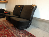 Har to forseter som ryggen er stygg på, men sitte putne er veldig bra. Baksete (puta) er i skai og er helt fin og ryggen som er i stoff (komplett med hattehylle og plata som dekker over) er også fin.