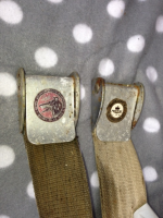 Likte setebeltene forran  Gliser det ene merket med "godkjent av vegdirektoratet"  Gliser
