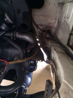 Naaa... Vi fant vel ut at det må settes under baksete da det lå en rød ledning å slang baki der, men ingen svart. Ei fant vi heller noe som helst annet sted batteriet kunne vært, men med den problemløsningen, pluss ledningsspagetti foran og bak, dro vi en frakk over hele bilen, og ble enige om at det får vente til våren.. Blunker