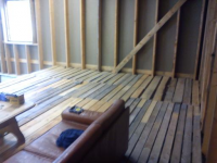 Fikk snekret litt mer gulv på egenhånd i går, men slapp opp for spiker, igjen. Vi må bli ferdige til helgen, for da flytter det inn flere beboere.
