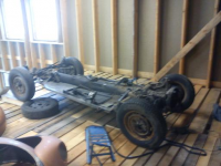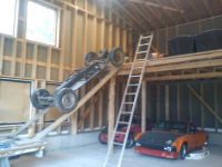 DSC01014.JPG (28.2 KB. 512x384 - vist 274 ganger.) Så var det tid for mission impossible: Bunnplate opp på hems, mer enn 3 meter over gulvet.