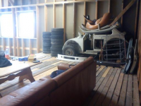 Bruker helga på å bygge hems med plass til deler og sofa. Bygges på øyemål og skjønn, og med en god mengde lykke og fromme.