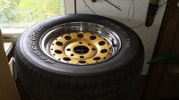 Sitter noen veldig slitte dekk på dem som må byttes før felgene tas i bruk. Mener bredden på disse dekkene er 225.