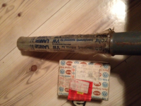 OEM Lange eksospotte 13-1600 + Lange eksosrør + NOS VW Montasjesett. Made in West Germany, alt ubrukt med litt riper i lagringslakken på potte. Eksosrør har beskyttelsesplasten på. Dette er skuddsikker kvalitet, den tyngste "originalpotta" jeg har holdt i. Hele pakka selges med minstebud 500 NOK Budfrist søndag 10.11 kl 20.00.