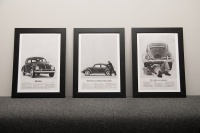 Jeg har måttet frigjøre litt veggplass og lurer på om det er noen interesse for disse innrammede annonsene. Trykket på glanset papir, størrelse 25x34cm.