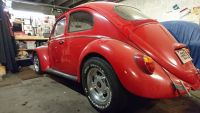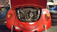 Takk for svar ang dekkene dere! Skal se om jeg ikke får justert de ulike vinklene selv, evt ta en kontroll på egnet verksted. Har kommer litt lengre med motoren også og ting begynner å falle på plass. Var en tur hos Erik på tirsdag og hadde en trivelig dag med litt bremsing og justering av motor. Testet ut to forskjellige eksostyper bla. og fikk ut noen tall jeg er veldig fornøyd med. Ser ut til å være en kurant gatemotor med maks-effekt på 5.5k og en helt ok momentkurve. Funnene fra bremsing med de ulike eksostypene (moderne CSP vs old schoold empi/scat) var på ingen måte overraskende og tallene var som følger: Empi m/reim: 74hk @ 5524rpm (103nm) CSP m/reim: 79hk @ 5750rpm (108nm) Empi u/reim: 83hk @ ca 5900rpm (113nm) CSP u/reim: 93hk @ 6126rpm (128nm) Konklusjonen er vel at vi er helt på grensen av hva empi-eksosen kan levere og den faller litt igjennom når turtallet økes. Forskjellen mellom empi vs csp er derfor mer markant når reima taes av og registeret flyttes noe oppover i turtall (5hk forskjell med reim mot 10hk uten). Kan forøvrig skyte inn at traktene ga 5hk ekstra mot ikke å kjøre noe (hverken filter eller trakt), billige hester med andre ord  Takk til Erik for en hyggelig dag!