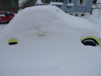 Etter en snøfattig vinter er det endelig skikkelig vinterføre igjen! Måtte bare ta en tur med bobla før de fikk saltet. Den turen bekreftet for meg at gamle bobler er overlegne alt annet når det gjelder å dra seg frem på vinterføre. Selv med 145 foran og 245 brede diagonaldekk bak fikset den lett en times hardkjør i nysnøen uten så mye som å tenke på å sette seg fast. Gliser enda
